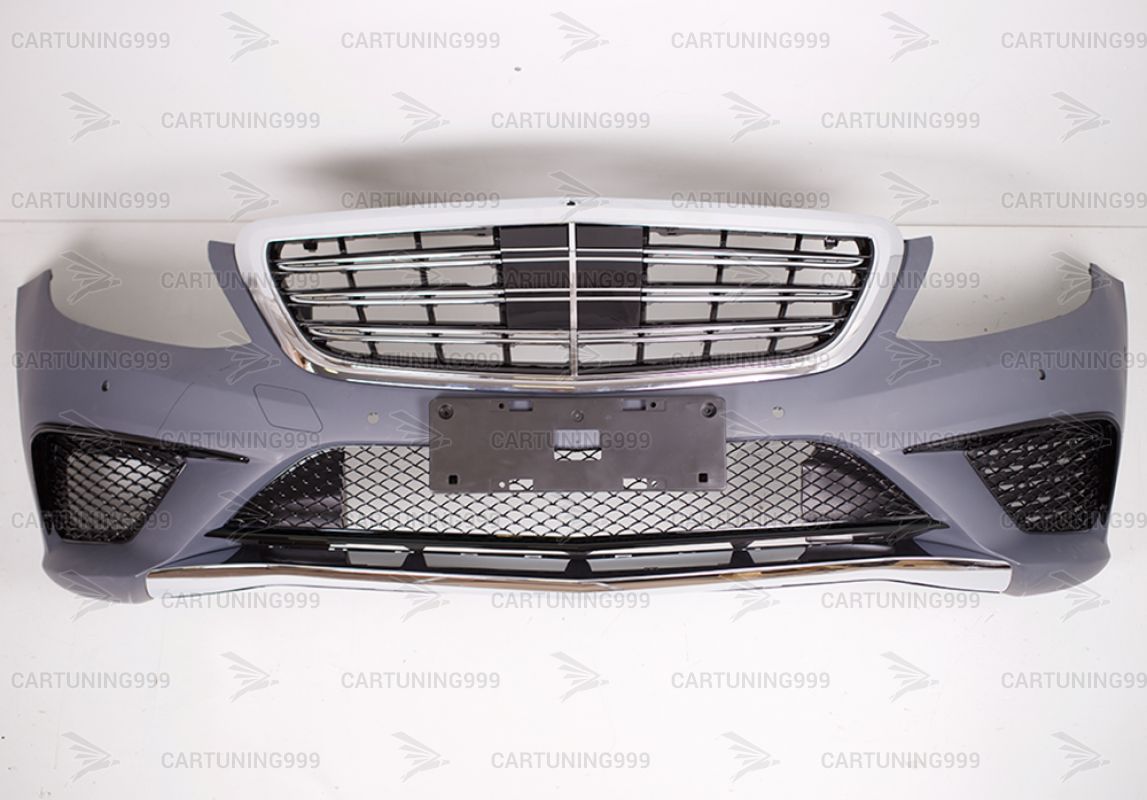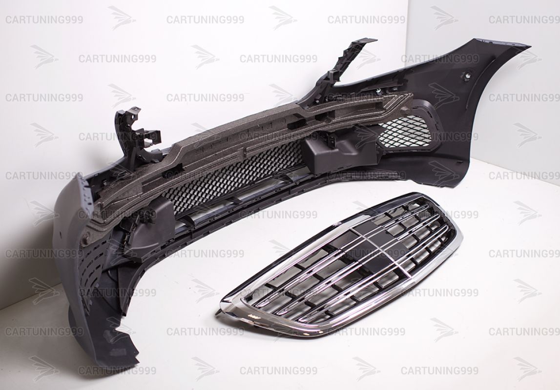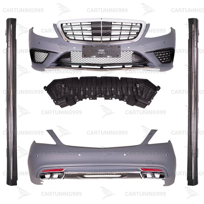 Обвес для рестайлинга Mercedes S-klass W222 в версию S63 AMG. Комплект включает в себя решетку радиатора, передний бампер в сборе, боковые пороги, задний бампер в сборе, насадки глушителей S63 AMG. Все детали новые. Установка производится без каких либо доработок - старые детали сняли, новые поставили. Все детали поставляются под окрас.