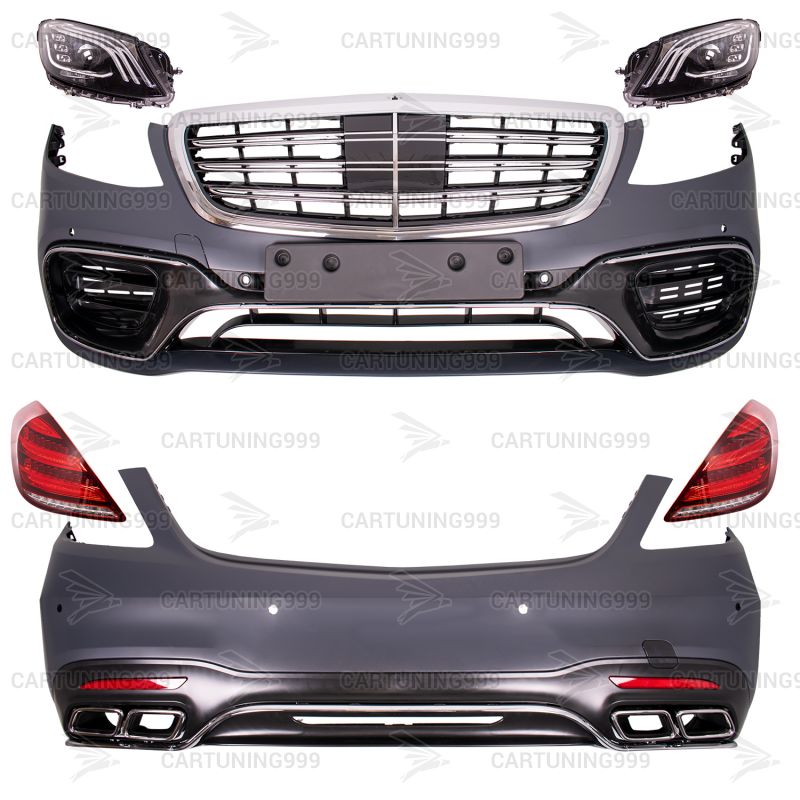 Обвес рестайлинг Mercedes S-class W222 изготовлен из высококачественных материалов и устанавливается в штатные места без переделок и доработок. В комплект обвеса на Mercedes W222 входит: передний бампер в сборе, передние фары, решетка радиатора, задний бампер в сборе, насадки на выхлопные трубы с гравировкой AMG, задние фонари и комплект крепежа.
