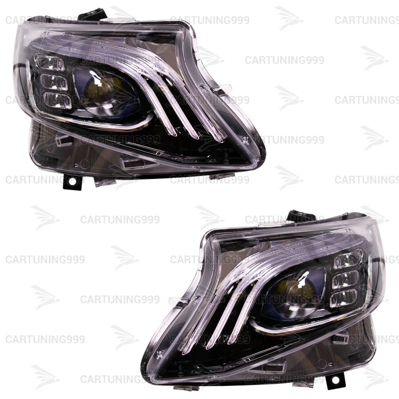 Передние фары на Mercedes Vito W447 дизайн Maybach изготовлены из высококачественных материалов и устанавливаются в штатные места без переделок и доработок.