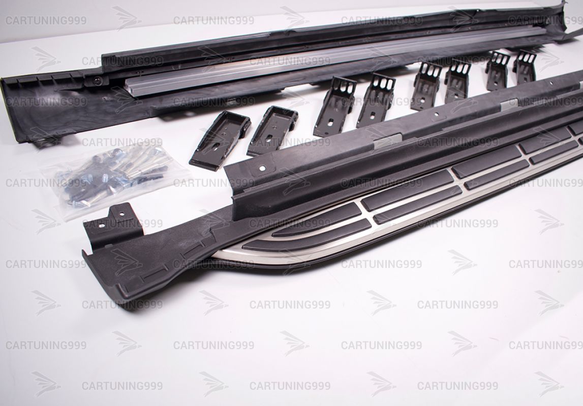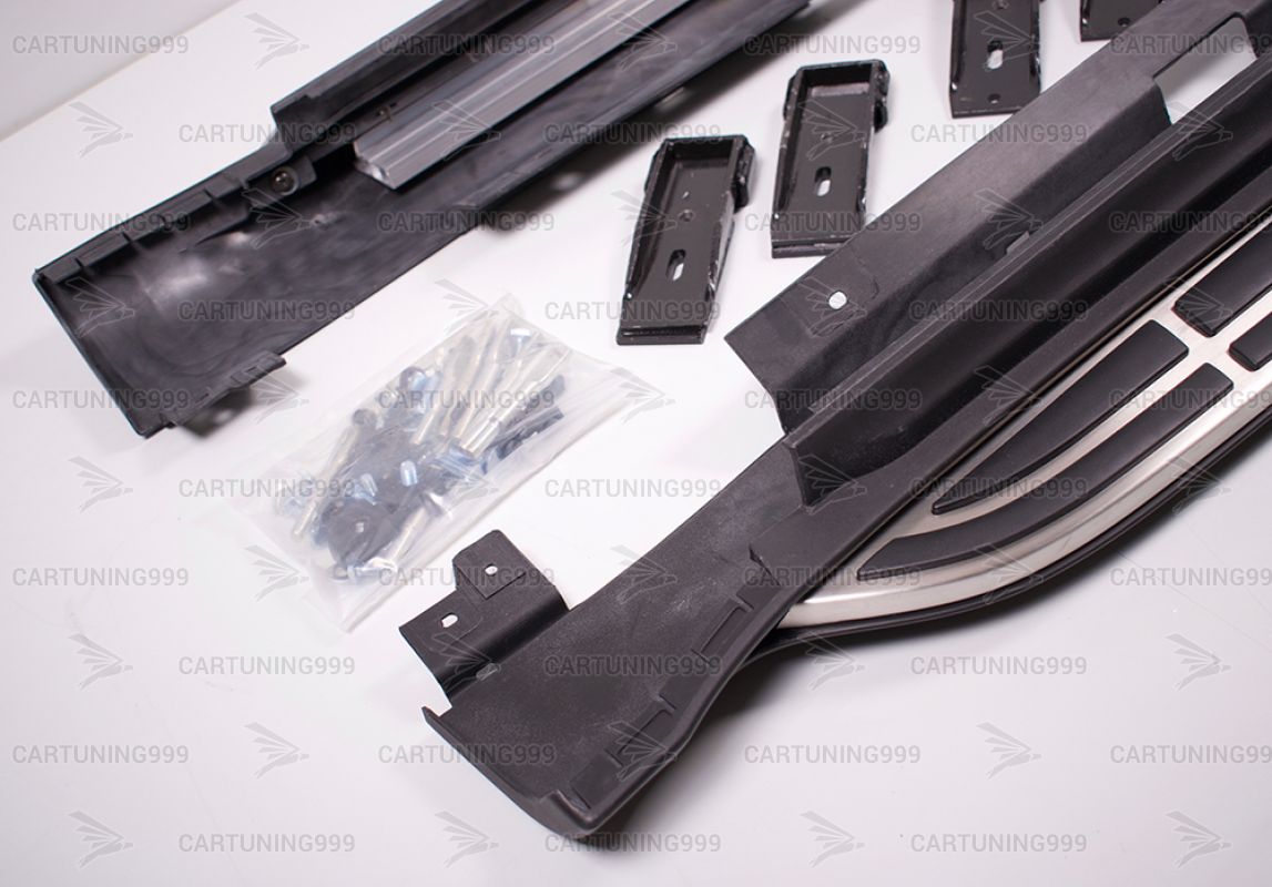 Пороги на Porsche Macan устанавливаются в штатные места без переделок и доработок. В комплект порогов входят: два порога левый правый, комплект крепежа