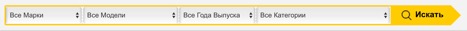 Фильтр поиска расположен в верхней части сайта и формирует выбор по марке, модели автомобиля, году выпуска и категории запчастей.
