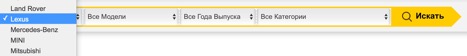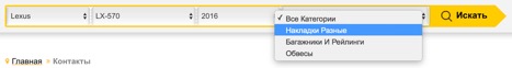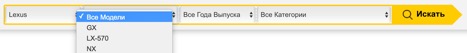 Кликая на «+» в поле марки автомобиля можно выбрать модель авто, год выпуска и интересующую к нему категорию запчастей для тюнинга.