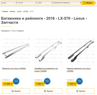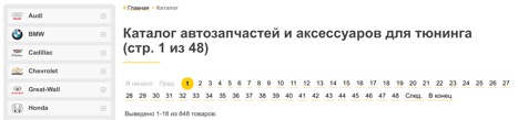Поиск запчастей для тюнинга вашего автомобиля доступен также из раздела «Каталог» главного меню сайта. В открывшемся при нажатии на раздел «Каталог» окне, для Вас удобно организован как постраничный просмотр автозапчастей и аксессуаров для тюнинга, так и просмотр по маркам машин.