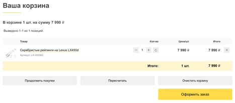 Если Вы выбрали необходимые для тюнинга вашего автомобиля автозапчасти и хотите завершить заказ, кликните на кнопку «Отправить заказ!».