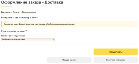 На данном шаге Вам необходимо выбрать способ доставки и оплаты, а на следующем указать свои контактные данные.