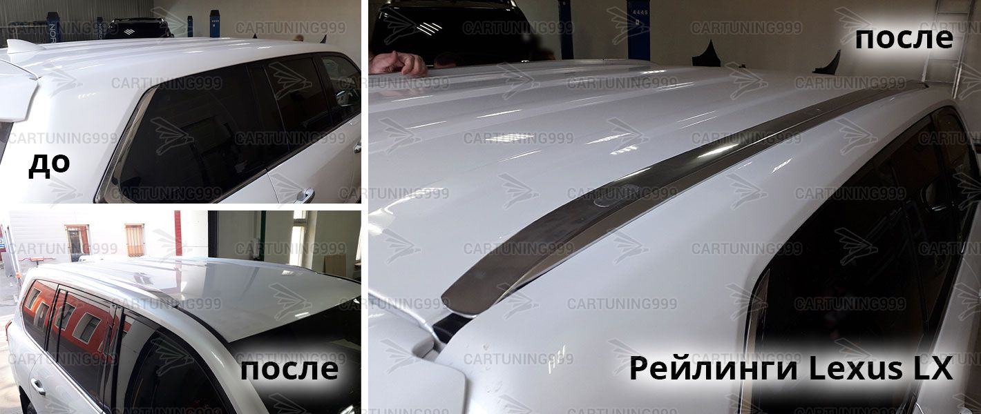 Лексус был с белой девственной лысиной. Поставили на него рейлинги и вуаля - теперь совершенно другое дело! Вот так вот просто, установкой одной детали можно поменять вид машины и увеличить её грузовые способности.